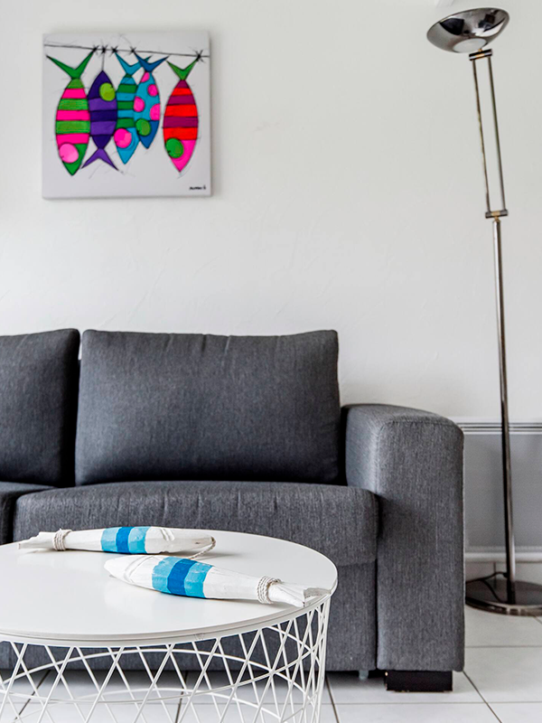 La troisième maison, le penty Ildult accueille 2 à 4 personnes. Le couchage se fait à votre convenance en mezzanine dans un lit de 140 ou en RDC sur canapé convertible express. L’escalier menant à la mezzanine est de type escalier de meunier. En rez-de-chaussée, un salon avec canapé, Hifi, TV, une kitchenette toute équipée, ... une salle d'eau avec WC.